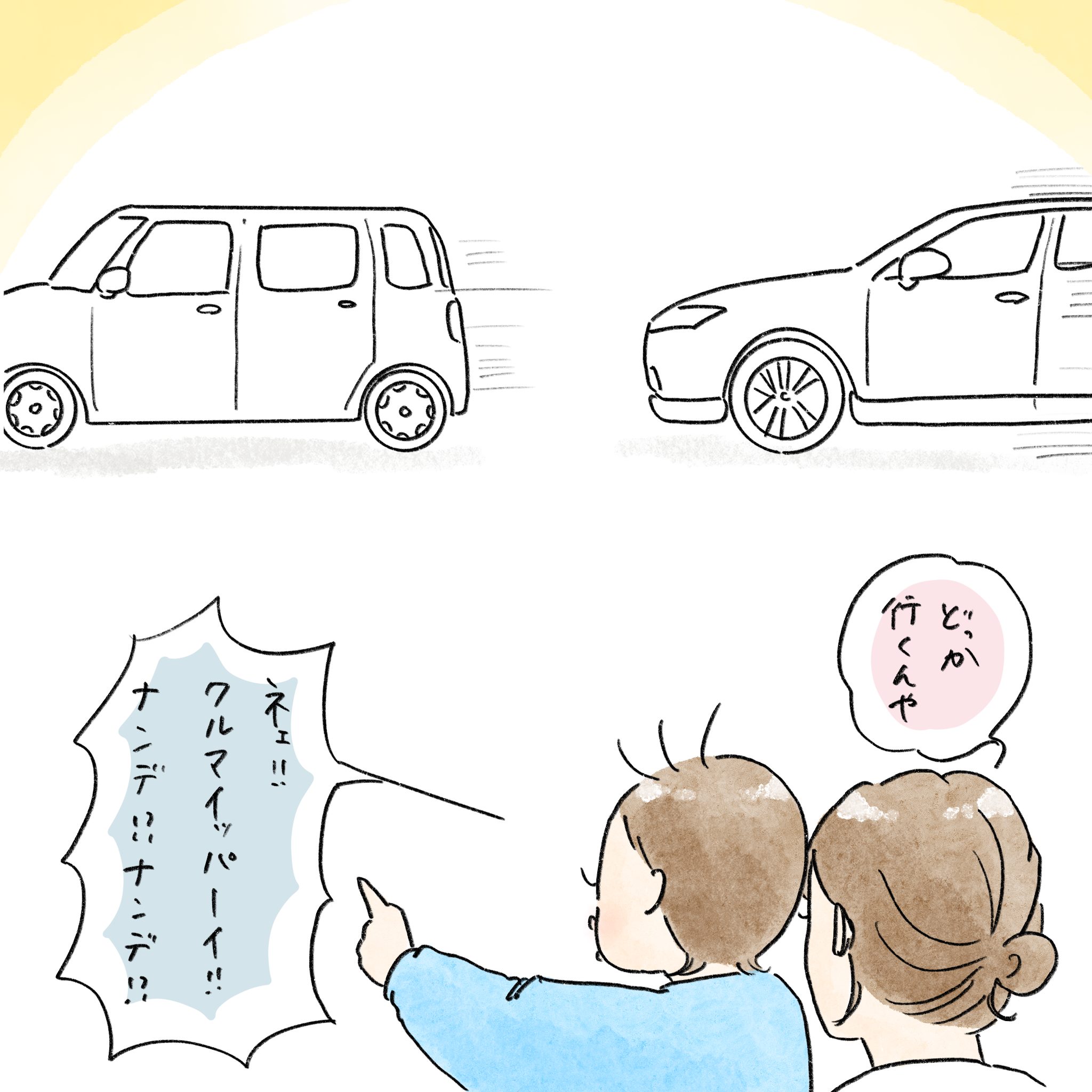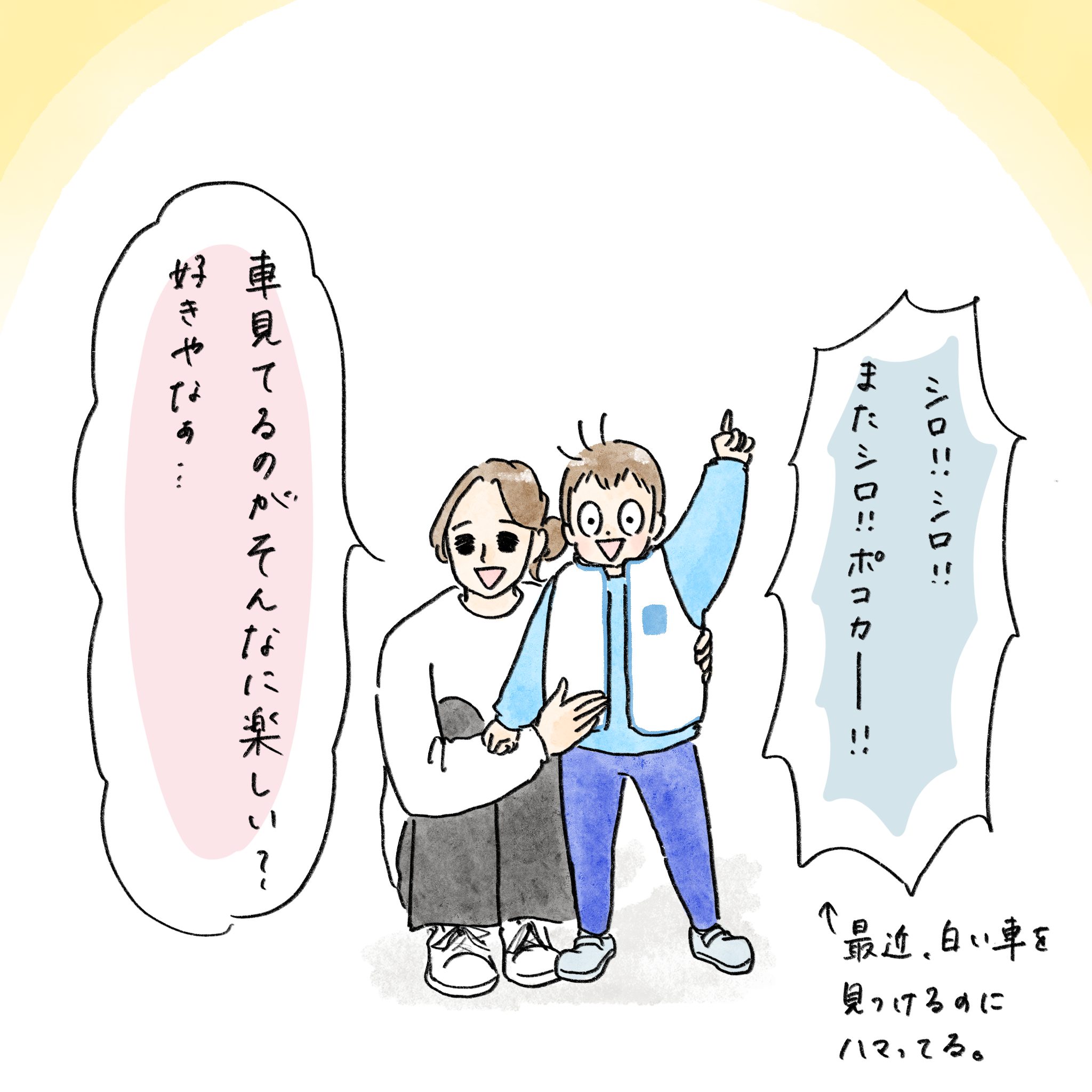 走る車を見るだけで、あんな嬉しそうにして…。追いかけっこしてるたいに見えるから、楽しそうなんだね。