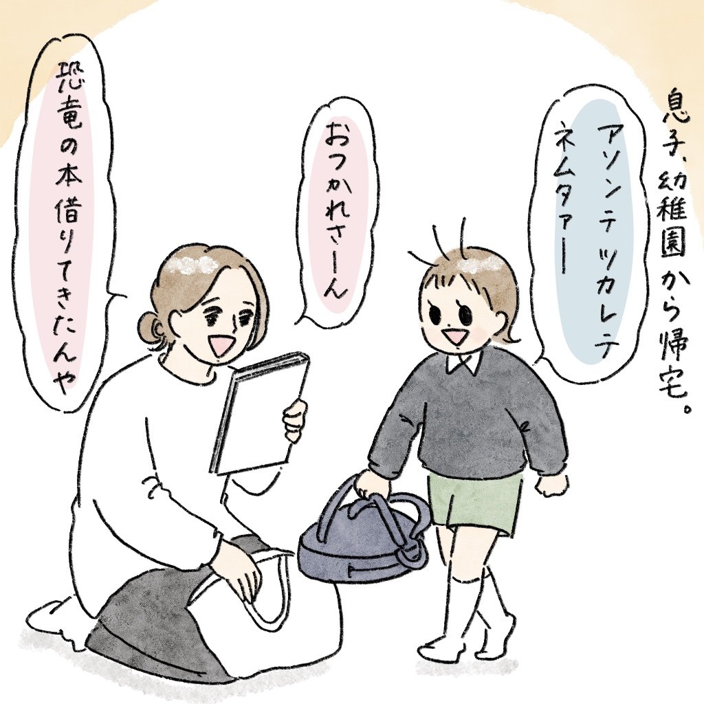 匂い2025.11.10子育て5歳, 8歳, 女の子, 娘, 子ども, 子供, 子育て, 息子, 男の子, 育児絵日記 こんばんは喉が痛いです。気のせい気のせい。匂い幼稚園から帰ってきた息子をくんくん…。 私だけかな?同じ匂いだと思うんです。 あとがきすごい懐かしくて、多分同じだと思うんです。同じ方いませんか?幼稚園、どうなってんの。 11/19(水)発売の書籍の予約はこちらから→☆ 118 コメントはこちら 同じカテゴリの記事 私の本 オムライス 大人になったら… シワ 匂い そっと話す あの季節 寝かしつけ おばあちゃん 読みたかった絵本 家に着いたら… お疲れパパ 思い出した 娘、8歳!!! 最近の朝 米 虫 確認 米 涙 お腹痛い 誕生日 大きくなりました お芋 ランチ どこ行った? 小魚 運動会 早歩き いいこと 頭痛の日 お友達できた 優しさ 参観日 ツバメ 帰り道 なんか付いてる 待ち受け 楽しみ 悩んだ日 姉ちゃんは… ファミレス 本が出ます ニュース 生まれ変わったら どうする? お茶 ぎゅー 練習中 トイレ いってらっしゃい なんでなん 息子の口癖 朝から何 日曜日 かまきり とんでもない ほんまになんで? 夏休み明け 確認したで? 照れる あつ森 ニセモノ えらい! 電車 おかえり 久しぶり なわとび 親子 パパの仕事 疲れ取れず ありがとう おかえり サプライズ 出張 深夜 脱走 目撃 なんでや バトル 食リポ 始めました 夏休み長いですね 見たことない シミ 変身 ケンカな毎日 散歩 可愛いココア いててて 発見 パパの色 ココアとの朝 ココアちゃん 捕獲 お昼ご飯 ショック こうなると 聞いてください 言いたがり 床の上 聞いてる? トマト 七夕 カラオケ 猫さん NEW水着 元気をくれる ちょっとした幸せ 足技 ご飯 かわいい 全力息子 チャック ぼわんっ ランドセル びっくりしたこと いい匂い 謝罪の姿勢 薬 ママのこと… 息子、熱 パパの仕事 散髪 制服 見学 買い物 夏服 手 右左右 犯人 怒る息子 汗かく 参観日 成長スタンプ おやつ時間 学習しない 片付け 深夜のみんな カメムシ かけ算 小学生 お腹 思い出 力持ち 自分のことのように 模様 なんでだと思う? 連れてくな センサー ドキドキする休み明け 回ってる? 小学生に向けて そういう星の元に 息子の応援 娘から聞く… フラフープ 寂しすぎて… かっこいい お便り 片付けて 何かついてる 優しさ 似てる 内緒 ポーズ 人間ドック 心配 待ち受け画面 目覚まし 撮影 初日 なにそれ 感覚 なんでだろう おやつタイム 散髪した息子 アドバイス 1年経って 花粉対策 ドキドキ パズル 黒い できるだけ楽しく どうしても欲しいアイテム 勝者にはこれ 家の中 お客さん お箸 映画 あれから… 片付け お気に入り 一言 話し合い 夢 ニュース 不思議くん ズボンぐいっ 喧嘩 足芸 喧嘩 ハマっている子たち また聞こえる… 風邪 大事だね ドクターイエロー やきもち サプライズ 自分の呼び方 かっこいい人 涙 らぶ 釣れるグミ リアクション リアルに… 僕のお皿 ほっぺた 特等席 土曜の仕事 インフルエンザ シクシク… きょうだいの会話 行き渋り かわいいよね? 出勤 姉ちゃん休み 学校での娘 息子の鼻水 息子の不安 私の宿命 今年の目標 元旦の悲劇 オーバークック フラフープ 漫才を極めたい サンタ来て良かったね M-1見た人たち クリスマスの朝 ヘアセット 漫才を見る どんだけ見たいねん 公園行った 宝物探し 贅沢な昼食 気付いた それ、それでいいの? いつまでやるねん 今までの何やったん ついにそんな時が 寝たかな? 本当に食べたいもの フラフープ お灸の効果 手遊び ゲーム どんな車? 会話 大人なの? ソファーの使い方 おやつタイム 平和な2人 息子の不安 なんでやねん どうしたらいいの どっちにするの 大丈夫やった? 呼び方 やってみる? 寄り道 その後 バースデーボーイ 人肌恋しい季節 入眠 ファン 寒い朝 髭 寒いってよ ばったり それってもしかして… デート まだまだ聞けるよ息子語 なのになんで? つられて… 季節の変わり目 カット! 7歳! 搬入お願いします いろいろな家があるよね 謎 眠い かっこいい娘 かわいいごっこ 息子は息子 言い間違い これできる? ご飯 稲刈り 未来 お腹 鼻 寝る前に 発見!! 学校で覚えてきた言葉 恋 話聞いて 髪色チェンジ ピキッと ツボ押し 坂道つらい 心が大人 大人やなぁ なんで? かわいい朝 参観日 急に 卵焼き 新しい靴 サプライズ 作る力 体調不良の日 お友達の名前 ムヒ 絆創膏 靴 行き渋り だからなんで 愛おしい 心配 近所の子供たち 久しぶり 鏡の中の私 分かった、分かったから リスペクト きょうだい愛 勘違い お昼ご飯の悲劇 朝っぱらから 頑張ってるもんな 久しぶりの2人 ごっこ遊び 大きくなったけど ご褒美 混乱 やっぱり 省エネ オリンピック 乗るんじゃなかった 母、ありがとう 真顔でやめて 撮影ですか? 将来の夢 肩たたき うっかりごめんね 寝言 映画 パワー 耳かき 今日も♫ なりきり 夏休みの毎日 新事実 人生ゲーム 車の中 AI 休日の朝 アピール カラオケ コップ あさがお 伸びた前髪 ダンゴムシ ついついやっちゃう 電話ごっこ そんなんばっかり お手紙 夏の夜風 なん